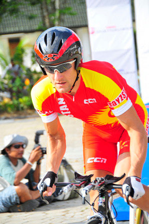 Участник Олимпийских игр в Сиднее 2000 года на шоссе.